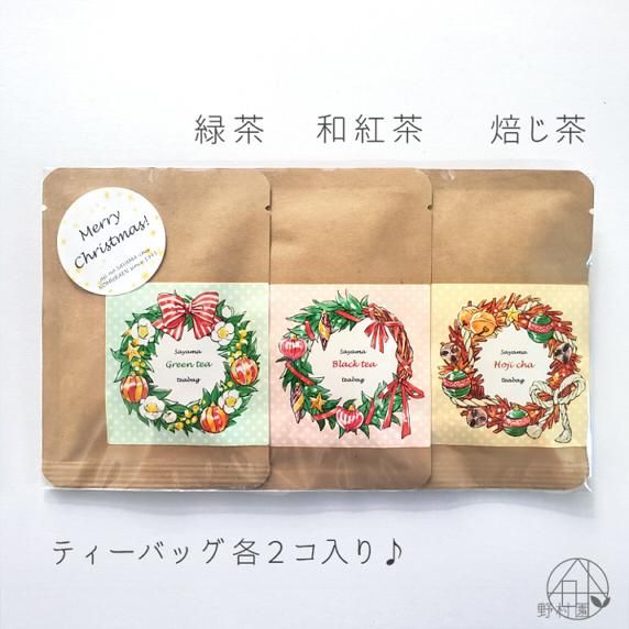 【送料無料】クリスマス限定♪3種のお茶プチギフト《緑茶・紅茶・焙じ茶 セット》