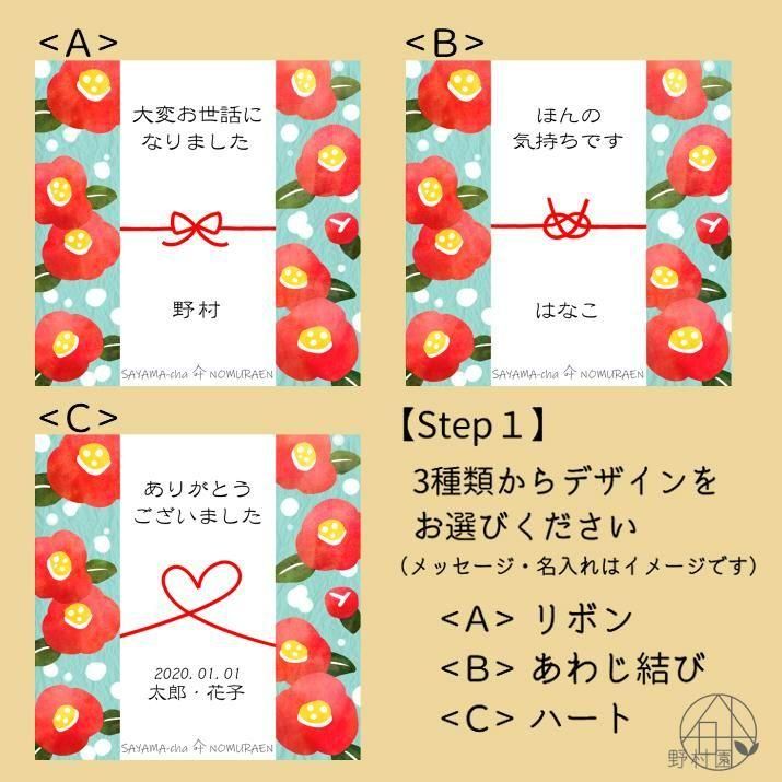【名入れ&メッセージ】3種のさやま茶プチギフト《冬季限定・椿デザイン》/緑茶・紅茶・焙じ茶