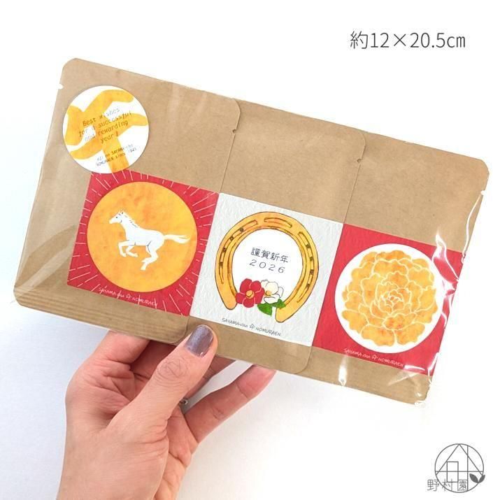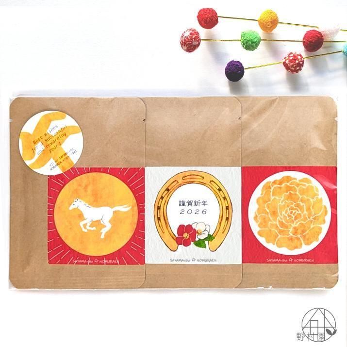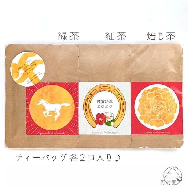 【送料無料】2026お正月🎍🐎3種のお茶 お年賀プチギフト♪《緑茶・紅茶・焙じ茶セット》